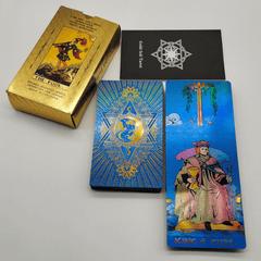 Durabilidade na sua mesa. Resistente e à prova d'água, lindas lâminas do Clássico Waite versão inglês com acabamento dourado nas 78 lâminas de tamanho 12cm x 7cm. Acompanha manual em inglês.